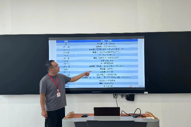 接着,黄克瑶详细地讲解了本学期教研活动的规划,明确了活动的时间轴与主题框架,并分享了混合式教学、高职院校的STEAM教育与跨学科整合、人工智能与机器学习在高职中的应用与挑战、产教融合与校企合作模式探索等热门研讨主题。重点强调了本学期教研活动固定时间依然为每周二下午的1点30至3点,地点为思学楼101。