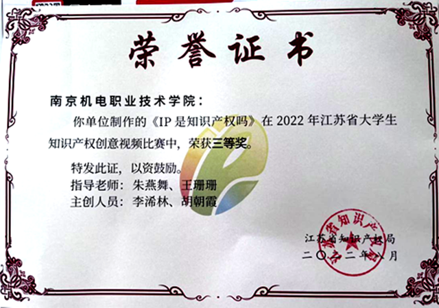 为了塑造尊重知识、 崇尚创新、 诚信守法、 公平竞争的知识产权文化理念,促进全社会更加了解、更加重视知识产权,江苏省知识产权局、江苏省教育厅、共青团江苏省委于2022年4月至8月举办了江苏省大学生知识产权创意视频比赛。