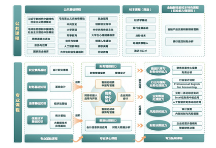 财务会计、管理会计、财经大数据技术基础、智能财务管理、智慧化税费计算与申报、大数据审计、财务与会计机器人应用、业财一体化实训、大数据财务分析等。