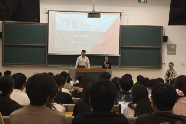 随后,苏展鹏聚焦金融科技应用领域,结合华泰证券的业务实际,为同学们讲解最前沿的金融科技应用知识。他从金融科技如何重塑证券交易模式,到大数据、人工智能在客户画像、风险评估等方面的深度应用,进行了细致且专业的阐述。同时,他还分享了自己在华泰证券担任团队长、私募基金渠道经理等岗位的工作经历,讲述了在这些岗位上如何运用金融科技知识开展业务、服务客户。