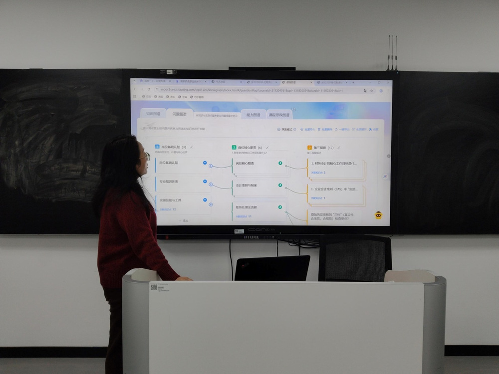 为持续深化AI技术与“一师一课”课程体系的深度融合,切实提升课程建设的科学性与实效性,12月2日会计教研室于弘毅楼108召开专项教研会议。本次会议以“复盘沉淀经验,聚焦图谱建设”为核心,既对前期“AI赋能一师一课课程简介”主题教研成果进行系统复盘,又围绕“知识图谱、能力图谱及问题图谱建设与完善”展开专题研讨,会计教研室全体教师参加会议,会议由薛蓓蓓主持。