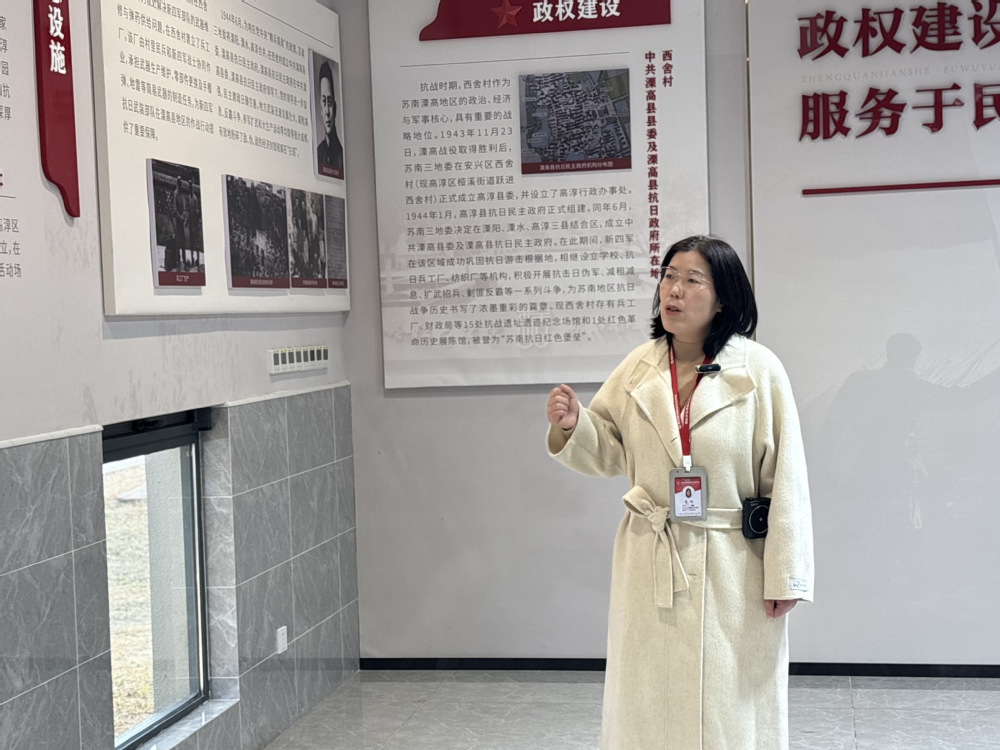 党员教师们在纪念馆门口整齐集合后,在马克思主义学院高杉、高金金两位老师的带领下有序进入展厅。两位老师以 “东进精神” 为脉络,结合馆内珍贵的历史文物、详实的文献资料和生动的场景复原,系统讲述了新四军挺进苏南的光辉历程。老师们的讲解既兼具理论深度与历史厚度,又饱含情感温度,让党员教师们沉浸式重温了那段军民同心、浴血奋战的峥嵘岁月,深刻感悟到新四军 “亮相立信、为民而战” 的初心使命和不畏强敌、敢于斗争的革命气概。