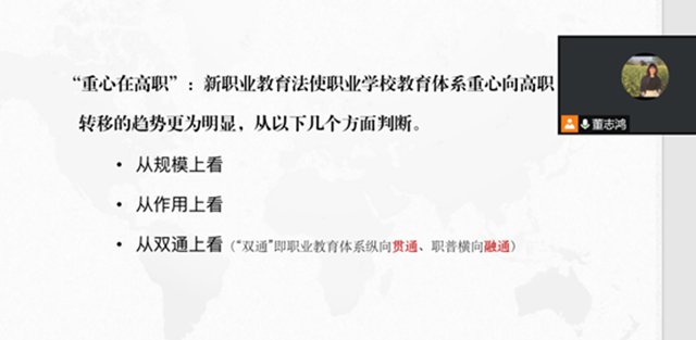 首先,董志鸿老师带领大家一起学习了《中华人民共和国职业教育法》。新职业教育法明确了现代职业教育体系框架,为职业教育的发展带来了新的春天,为社会认可职业教育奠定了法律基础,为职业教育学生带来进一步的自信与发展,同时也为我们职业教育人带来了鼓舞和信心。大家的感触颇深,每一个人都进行了发言。