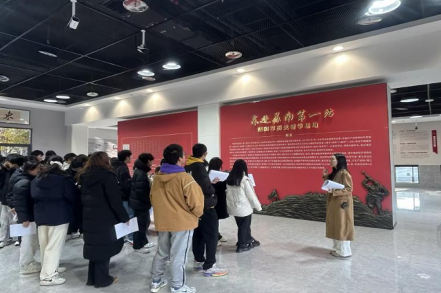 为深入推进思政课教学改革,将红色资源转化为育人优势,12月6日,马克思主义学院以“赓续红色血脉、强化使命担当”为主题,创新推出“校内研学+校外实践”双线联动的实践教学模式,通过校内基地沉浸式学习与校外场馆情景化教学相结合,让思政课堂走出课本、贴近现实,引导学生在实践体验中深化理论认知、厚植家国情怀。