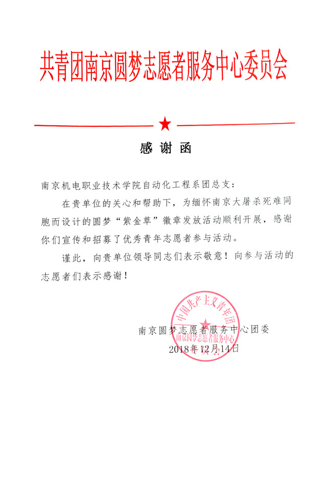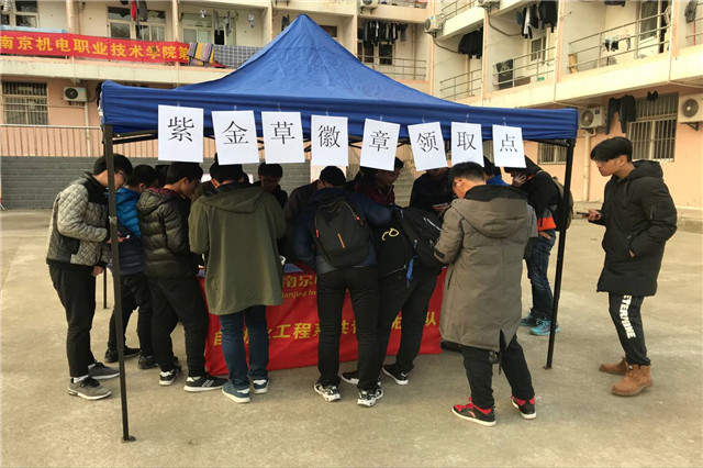 12月12日下两点,我系团员青年们在党支部的带领下携手南京圆梦公益志愿者服务中心团委在beat365宿舍二栋广场前开展了一次“紫金草”纪念徽章发放活动。
