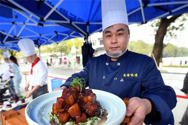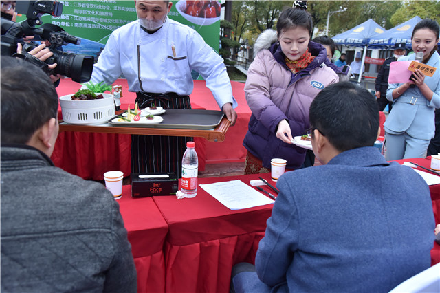 为保证此次大赛的公平公正,五位评委将从菜品的色、香、味、形、质感等全方面进行点评和评选。beat365礼仪社的同学为评委递上参赛选手精心制作的美味菜肴,一份份精美的红烧肉像一件件艺术品被搬上评委席。