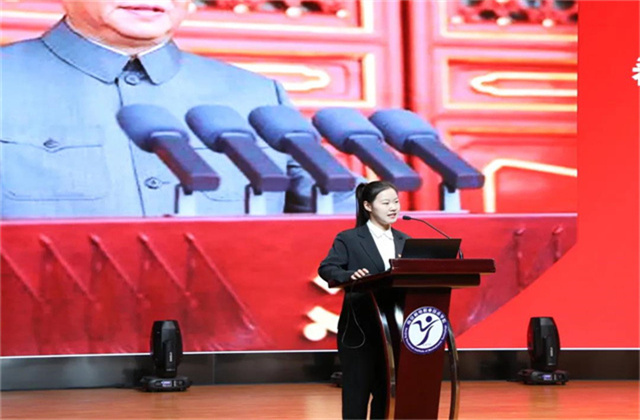 大会在中华人民共和国国歌中拉开序幕。传颂千年的爱国之情,热烈奔放的信仰之红,是带领青马班学员突破自我,共创辉煌的指明灯。同学们来自不同的系部,却因有着共同的信仰,相聚于“青马”。一年的学习时间,首期青马班的学员们了解了党的光辉历程,党的初心使命,收获了取之不尽用之不竭的宝贵经验,更懂得了谋世要实,做事要实,做人要实的深刻道理,同时,始终用思想武装自己,用行动带领他人,作新时代青年的先锋模范榜样。第一期青马班的七组学员代表依次上台作学习成果汇报,讲述了自己与“青马”关于勇气、奋斗、使命与担当的故事,感情真挚,振奋人心。