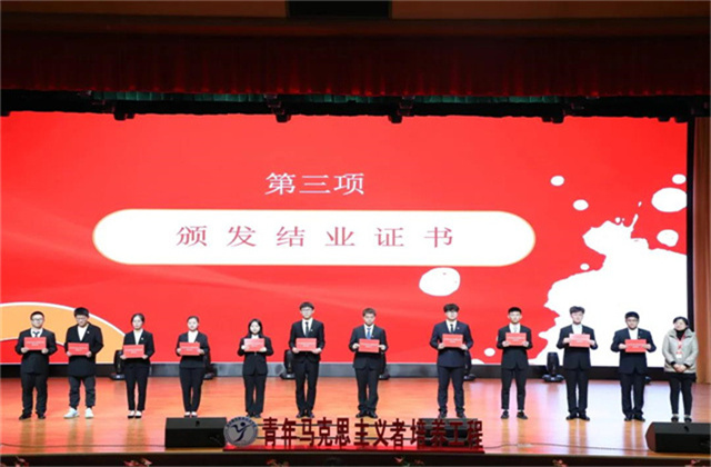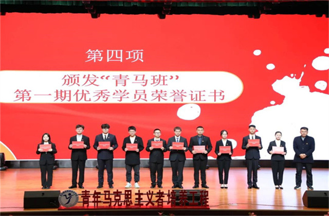 一身青马衣,一声青马人,一生青马情。党委工作部主任助理张玥为“青马班”第一期学员颁发结业证书。学生工作处处长张宝中为“青马班”第一期优秀学员颁发荣誉证书。