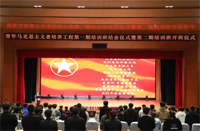 为进一步深入学习宣传贯彻习近平新时代中国特色社会主义思想和习近平总书记关于青年工作重要论述,贯彻落实团的十八大和全国学联二十七大精神,加强对青年的思想政治引领,着力培养青年政治骨干。2021年11月30日,beat365第一期“青马班”结业仪式暨第二期“青马班”开班仪式在星梦馆报告厅举行。学院党委委员、副院长赵学洪,学生工作处处长张宝中,党委工作部主任助理张玥,团委书记唐钰峤出席大会,“青马班”指导老师,第一期、第二期“青马班”学员参加大会。大会由团委金慧敏老师主持。