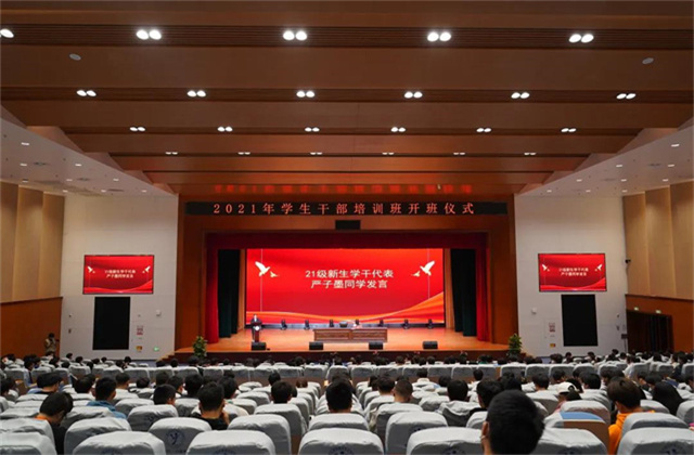 开班仪式在《中国共产主义青年团团歌》中结束。本次学干培训旨在提高学生干部的工作积极性与工作效率,增进沟通与交流。会后,院团委组织部部长邱宇同学宣读了《2021年学生干部培训管理规定》。纪委副书记、党委工作部部长周启国作为本次学干培训的首期授课老师,以《牢牢把握意识形态工作的领导权》为题,教育学生干部们既要志存高远,也要脚踏实地,在新时代展现新作为,体现新担当。