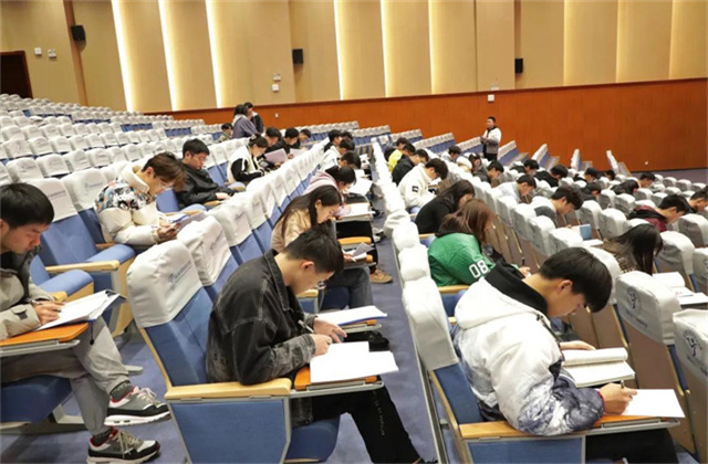 试卷作答中,考场十分安静,只能听到笔尖和试卷之间的摩擦声,同学们针对试题内容,分条作答、冷静思考、辩证分析,遵守考场纪律,院团委负责监考的学生干部来回流动式巡视,严格对待此次考试。团委书记唐钰峤巡视了考场纪律,保证了本次考试的公平公正性。