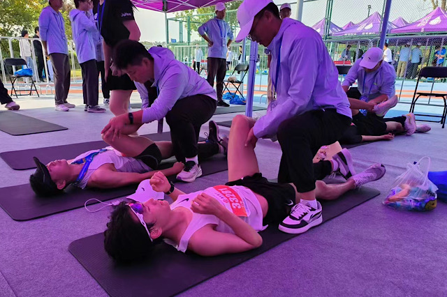 参赛选手们在赛道上挥洒汗水,志愿者们在岗位上各司其职。物资组仔细认真地进行赛事物资分配工作,存衣组负责妥善保管参赛者的衣服。每2.5公里设立的补给点上,志愿者们也为选手们提供着必要的补给和支援。后勤组也随时待命,以应对突发情况的发生。拉伸组负责帮助选手们进行适当的赛后拉伸,以缓解肌肉疲劳。各组成员分工明确,配合密切,有条不紊地开展着赛事服务工作。在志愿者们的共同努力下,本次马拉松圆满落幕。他们用热情洋溢的笑容、周到细致的服务,为参赛选手和观众们带来了一次难忘的体验,成为了赛事中一道靓丽的风景线。
