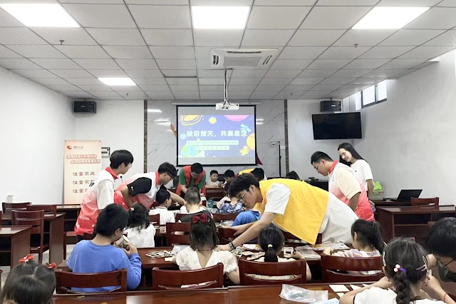 为坚持校地共建、服务高淳,勉励大学生走进社会基层,增强时代责任,提高公民意识以及社会服务意识,5月25日,自动化工程系机电234班与机电235班在大丰社区面向社区小朋友开展了“极目楚汉,共襄星汉”航空科普进社区活动。