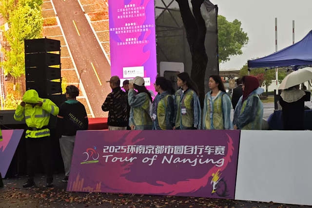 2025年4月12日,中国银行·2025环南京都市圈自行车赛暨大运河自行车系列赛在高淳游子山鸣枪开赛。南小电志愿服务队50名成员坚守岗位,用青春热血筑起赛事“安全屏障”,在风雨交加的赛道上书写新时代青年担当。