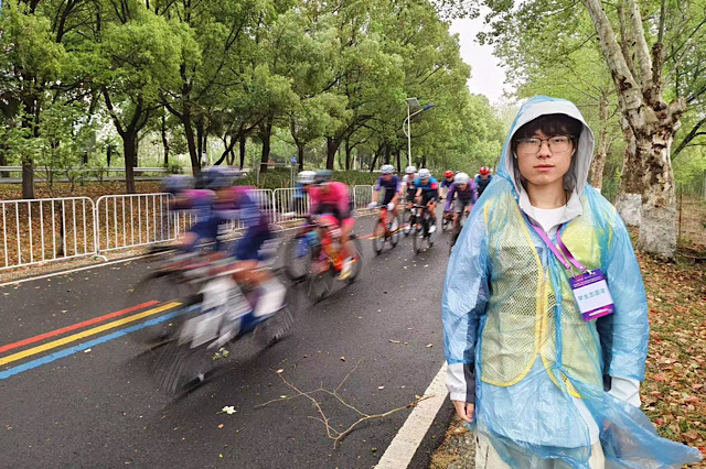 赛道沿线,每隔一段距离就有身着鲜艳志愿服的同学们挺立坚守。于赛前清理赛道上的障碍。保持赛道封闭,如遇摔车等突发状况,及时通知取得救援。即使面对台风的侵袭,也依然用双手扶住赛道两旁的护栏,防止倒塌砸伤高速行驶中的运动员。在终点区域,志愿者们的热情与风雨形成鲜明对比。他们呐喊助威,为冲刺的运动员送上最炽热的欢呼。