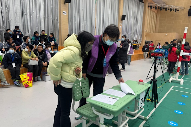 比赛期间,志愿者们坚守各指定岗位,化身“秩序守护者”。他们时刻关注赛场动态,对参赛选手和家长进行有序引导,提醒大家保持安静,为参赛选手营造专注的竞技环境。面对选手和家长的问询,志愿者们耐心细致解答,用真诚服务传递温暖。从中午到赛事落幕,志愿者们始终精神饱满,用严谨细致的工作态度保障了赛事各环节的顺畅衔接。