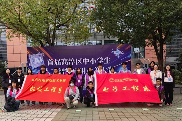 2025年12月20日,高淳区中小学生人工智能应用素养大赛在高淳区宝塔小学圆满举行。为保障赛事顺利开展,电子工程系与机械工程系组建的学生志愿者团队,以饱满热情和专业态度投身志愿服务,成为赛场边一道亮丽的风景线。电子工程系党支部书记叶绘、专任教师郑明明以及团委书记魏澜参加活动。