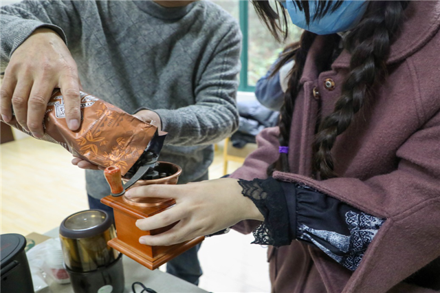 陆老师认为:“机器再好,也不如一杯手工调制的咖啡”,在分享了咖啡的知识后,咖啡社三位成员分工明确,依次向同学们展示咖啡社团的特色,叙述“我与咖啡的故事”,现场制作咖啡,让同学们品尝。
