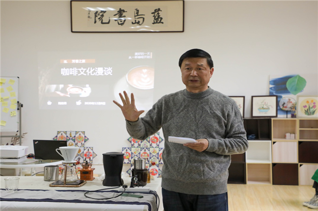 2020年12月8日下午,学院图书馆二楼的蓝岛书院,满室飘香,四处弥漫着Starbucks咖啡和书的味道。原来是院团委青青女子学堂社团举办的一场“芳香之旅 漫谈咖啡文化”活动!据说因为疫情,此次活动筹备了一年多,特邀江苏城市职业学校的陆松岩教授和其咖啡社团团队一起来漫谈咖啡文化,和机电的学生一起制作咖啡,现磨咖啡,品味咖啡。本次活动由青春女子学堂联合学院4大社团:国际文化社、读书者协会、青藤文苑和英语社共同举办,覆盖面广,参与人员多。