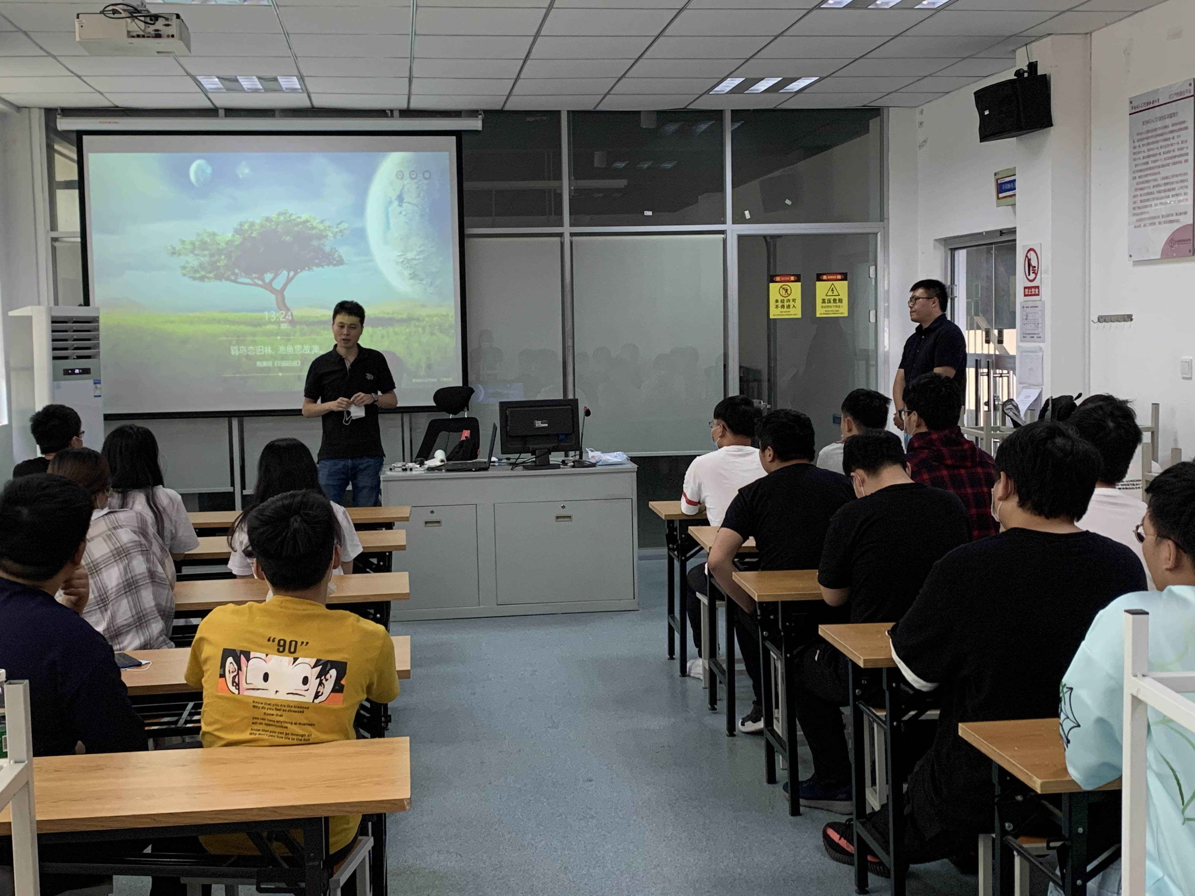 王海飞经理给大家介绍了通信行业的各个岗位所对应的工作内容以及各类要求。王经理作为通信行业的专家级工程师,以自身的工作经历和,勤能补拙,嘱咐各位同学在岗位上要有吃苦耐劳的精神,要有大局观念和全局视角。并且要对自己的职业目标和职业规划非常清晰。