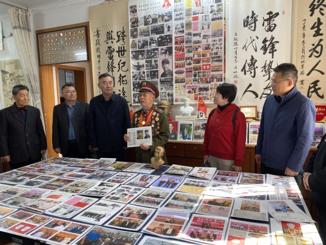 慰问现场,大家认真聆听他与雷锋同志并肩奋斗的往事,以及多年来践行雷锋精神、扎根基层奉献的感人事迹。老人拿出珍藏的与雷锋相关的资料、荣誉证书和书画作品,深情讲述背后的红色故事,让在场人员深受触动。大家纷纷表示,赵明才老人用一生坚守诠释了雷锋精神的永恒价值,是鲜活的“红色教材”。