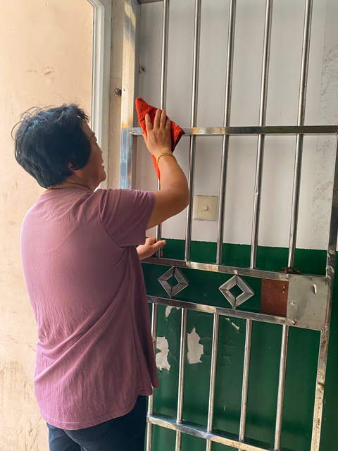 我想,如果要给阿姨们一个代名词的话,那她们就是这炎炎烈日下的“坚守者”。冒着高温酷暑,她们不遗余力,晶莹的汗水也早已湿透她们的衣襟。你听,那一扇扇窗户被打开的声音,正是阿姨们在为宿舍注入新鲜空气;你看,她们一次次地弯腰,为我们扫除肉眼可见的尘埃;你闻,那刺鼻的味道,正是阿姨们叩开一间间的房门,不留一个死角地为我们喷洒消毒水所遗留下来的……在这一整个艰辛而又重要的准备期间,学工处处长张宝中也曾多次莅临学生公寓现场进行检查,并对辛勤付出的阿姨们送上了最真诚的慰问。