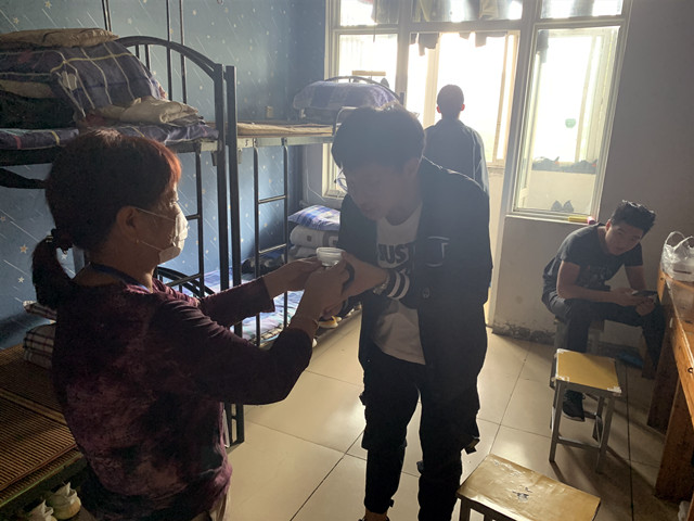 在这个季节,喝姜汤是驱寒、防治感冒的有效方法。因此,大学生生活服务与管理中心特地外出采购食材。2020年11月2日,宿管老师们将采购到的生姜、红枣、枸杞等食材进行了冲洗、切片等工序的加工,随后放入锅中和红糖一起小火慢煮。在经过长时间的熬煮后,热乎的生姜红糖水就成了同学们的囊中之物了。