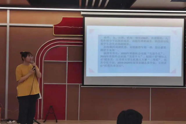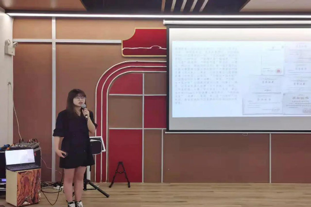主讲人汪可人同学着眼于自身作为“双创先锋班”成员的身份,结合自身参加各类比赛、活动的丰富经历与在场的同学们分享了自我的收获与提升。她首先呼吁同学们要积极加入各类学生组织和学院特色班成员,以此为踏板,在不同的平台上展现自我的能力。同时,要积极参加各类职业技能大赛等,以此提升的不仅仅是自我实践能力,更多的也是对思想意志的打造、磨炼。最后,她告诫同学们“把时间花在哪里,结果就在哪里”,希望在场的每一位同学们能够在自己的征途上展露光彩。
