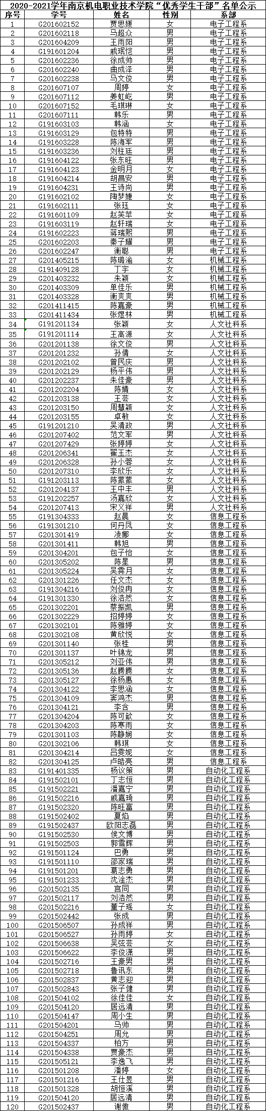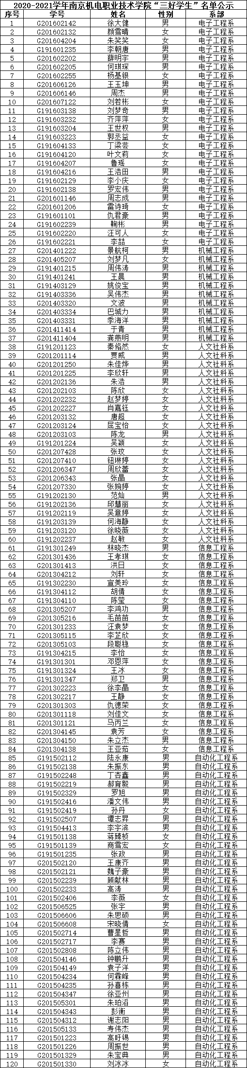 根据《关于评选2020-2021学年“三好学生”、“优秀学生干部”和“文明班级”的通知》规定,经学生本人申请、班级评议,系部审核推荐,学生工作处核准,学校审批,在公平、公正、公开的基础上,拟评选出以下个人和班级为2020-2021学年beat365在线唯一官网“三好学生”、“优秀学生干部”、“文明班级”,现将名单公示如下。