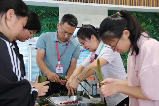 舌尖上的端午同样精彩纷呈。“‘红’运当头”与“‘红’图大展——品五红”活动,让师生们品尝了龙虾、苋菜、烤鸭、咸鸭蛋、小番茄等寓意吉祥、驱邪避暑的端午时令美食。“实力出‘粽’——粽子领取”和“‘粽’想‘食’光——包粽子”活动,不仅满足了味蕾对传统美味的深切渴望,更让参与者在亲手包制粽子的过程中,深刻体会到劳动的乐趣与食物的来之不易。“清凉一‘夏’——品绿豆汤”则为炎炎夏日带来一份贴心的清凉慰藉。