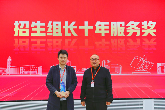 党委副书记、副校长赵学洪为获得“招生组长十年服务”的机械工程系主任毛奇颁奖。