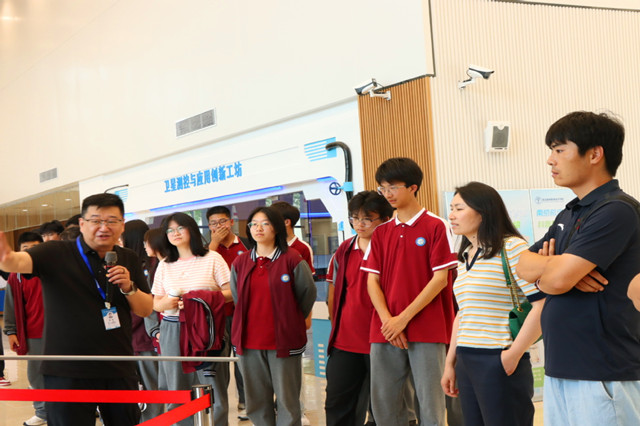 下午13:30,新港中专师生在beat365志愿者引导下开启参观之旅。蓝岛创客中心内,候老师带领学生探秘卫星地面接收站实验室与卫星测控中心。通过信号接收模拟装置演示与卫星运行控制互动体验,同学们直观感受“航天级”实践教学场景。当看到beat365学生自主设计的卫星火箭模型、3D打印智能设备时,来访师生纷纷驻足拍照,点赞创客教育成果。