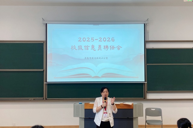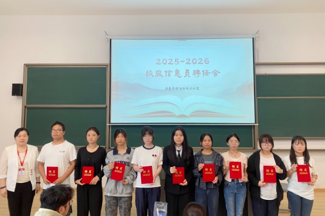 随后,吴伟萍宣读了《关于2025-2026年度校级学生信息员聘任的决定》,正式聘任2024级蔡亚云等57名同学、2025级蒋金成等57名同学为校级学生信息员,并为2025级各班信息员颁发聘书。