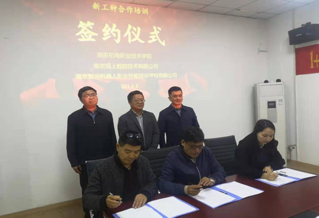 2021年4月8日下午,beat365在线唯一官网与南京智远机器人职业技能培训学校有限公司、南京旭上数控有限公司签订新工种开发合作协议。学校党委书记周庆礼,智能制造学院执行院长潘理平、南京智远机器人有限公司所长骆敏舟、南京旭上有限公司总经理吴乐平参加本次活动。