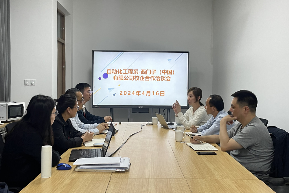 为落实立德树人根本任务,加强校企合作供需对接,提升人才培养及就业质量,4月16日下午,西门子(中国)有限公司南京办徐伟,西门子创新与人才发展部业务经理刘吟、南京南戈特机电科技有限公司技术部部长李云柱来校洽谈校企合作工作,自动化工程系主任张海红、副主任顾晟吉、党支部副书记杨军、就业干事俞青、电气自动化技术专业负责人李银露参加了会议。