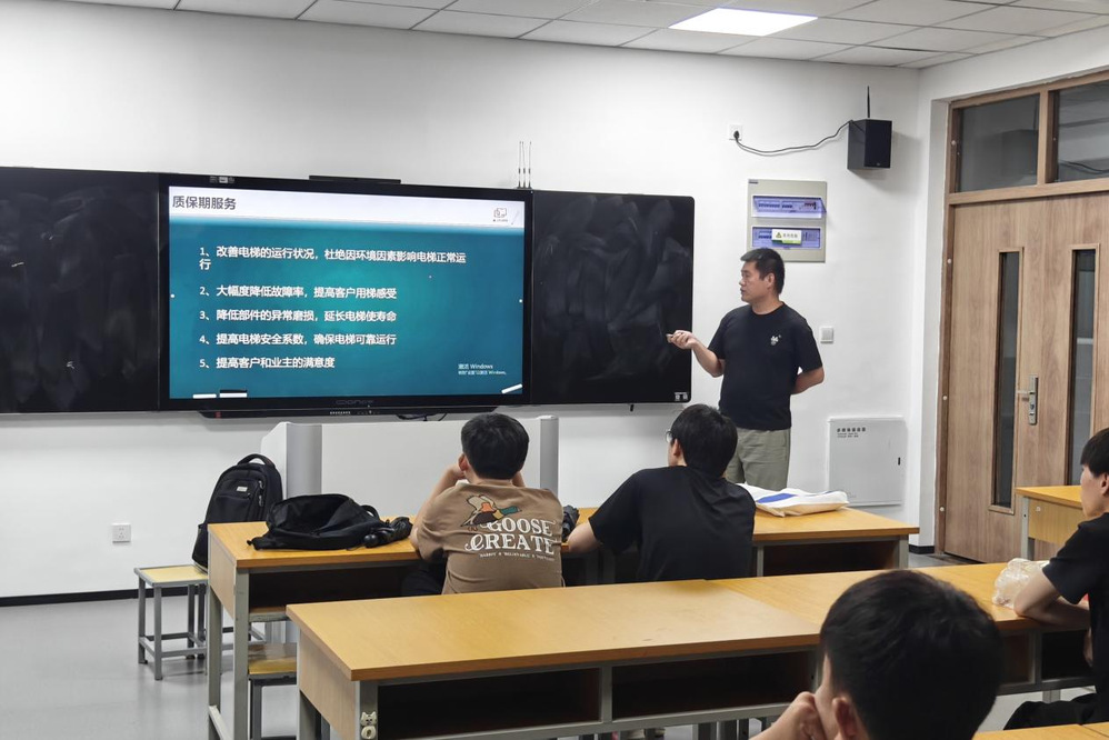 培训围绕电梯维保条线概况及维保工作服务规范、电梯基础知识和产品特性介绍、安全操作规程三大核心模块展开。通过系统讲解,学员们不仅能够全面了解电梯维保行业的整体概况与服务标准,还能深入掌握电梯的基本原理、产品特性以及安全操作的各项要求。