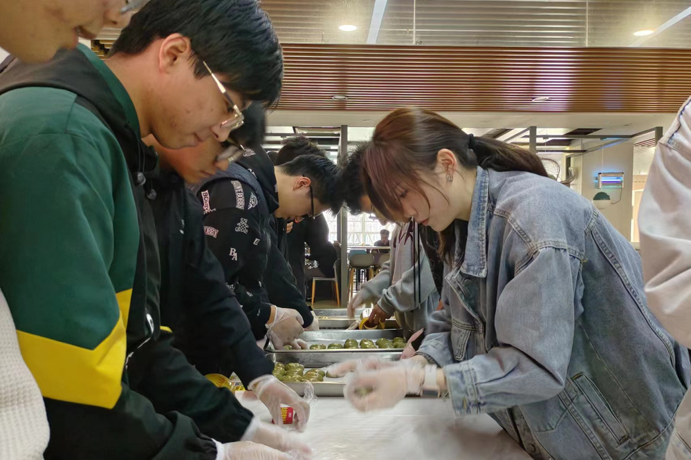 青团,满怀季节记忆的食物,为春天而生,每一口都是山野之色,每一颗都饱含鲜活的气息,浓郁透彻的香气在味蕾间流转的片刻,便将春天融进了心里。在这个春意盎然的季节,我系团员青年用心挑选原料,26日下午,同学们将制作完成的青团稍作整理,装进包装盒,送到阿姨和老师们的手中。当宿管阿姨和老师们收到这份特别的礼物时,都表现出了极大的感动和惊喜。一位阿姨表示:“这些孩子们真是太有心了,青团很好吃,但更重要的是他们的心意,让我们感受到了家的温暖和孩子们的尊重。”一位老师也感慨道:“看到学生们这么用心,真的很感动。这不仅仅是一份礼物,更是他们对我们工作的认可和肯定。”