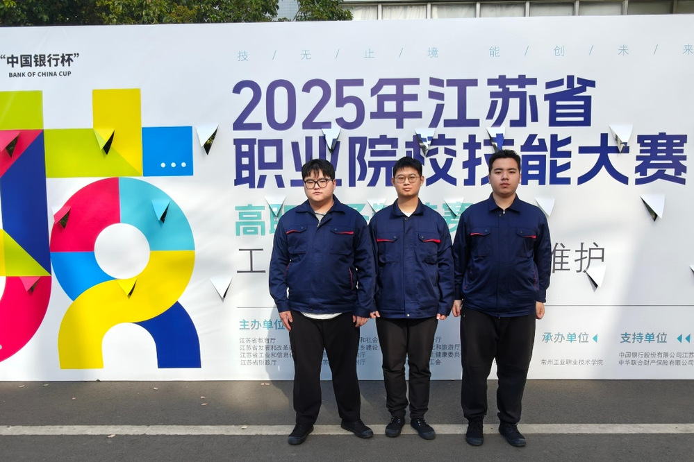 4月14日,2025年江苏省职业院校技能大赛——工业网络智能控制与维护赛项在常州工业职业技术学院举行。来自全省的38支学生代表队、28支教师代表队参加比赛。自动化工程系顾晟吉、吴杰组成的教师代表队,韩业盛、沈鹏程、张官组成的学生代表队与全省各高职院校参赛选手同台竞技,最终荣获教师组二等奖、学生组二等奖。