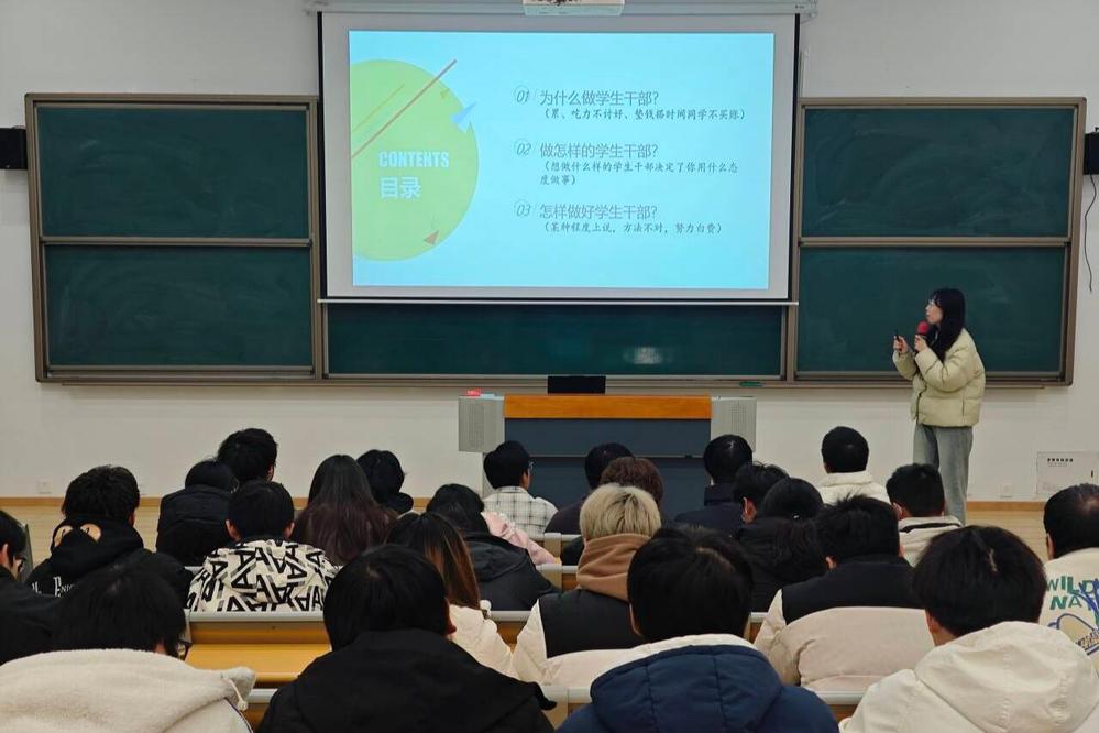 本次培训内容围绕“为什么做学生干部”“做怎样的学生干部”“怎样做好学生干部”三大主题展开,结合前期调研中反映的常见困惑与现实问题,引导学生干部深入思考角色定位与成长路径。培训中特别强调了“有为”与“有畏”的辩证统一:既要勇于担当、积极作为,也要心存敬畏、严守底线,做到“心有所畏,行有所止”。