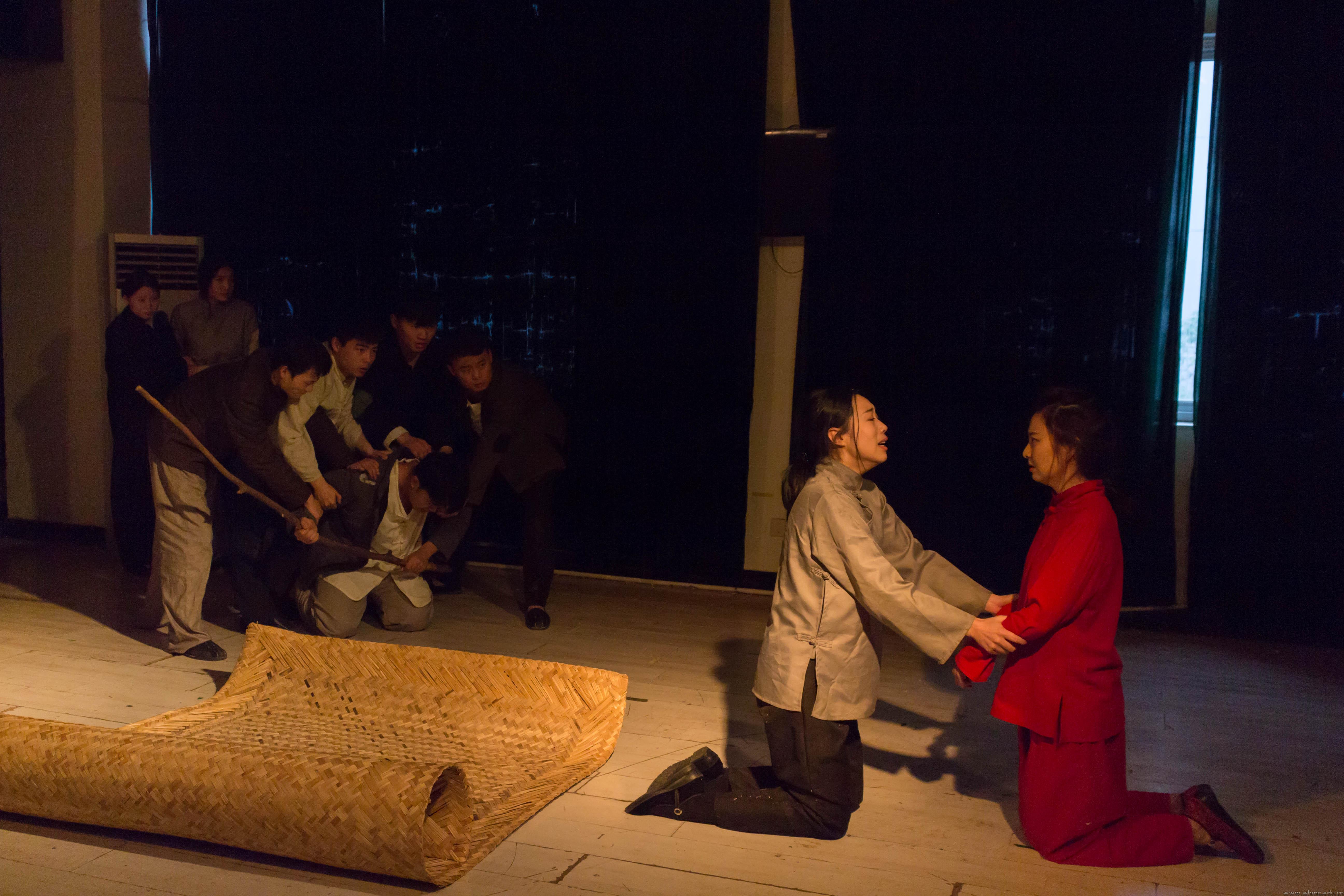 《生死场》导演是表演专业韩伯晨老师,他希望同学们接下来要更深层次地学会如何去把握一个人物的创作方法。为更好诠释东北汉子的形象,剧中饰演赵三的赵映杰同学,一口仙桃普通话的他,还特意找东北同学交流学经验。